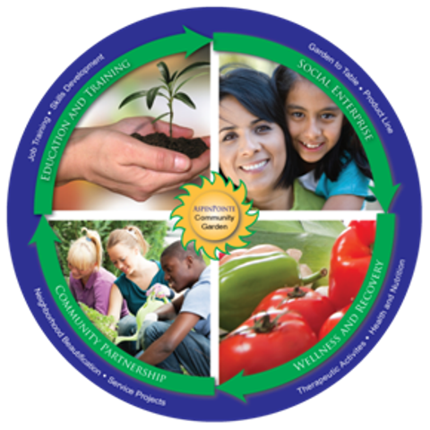 “A 42 ft. Geodesic Growing Dome was added to the garden in April 2013 to allow the community garden to provide programming for our clients and community year-round and to help provide fresh, local produce for our AspenPointe Café throughout the winter months.