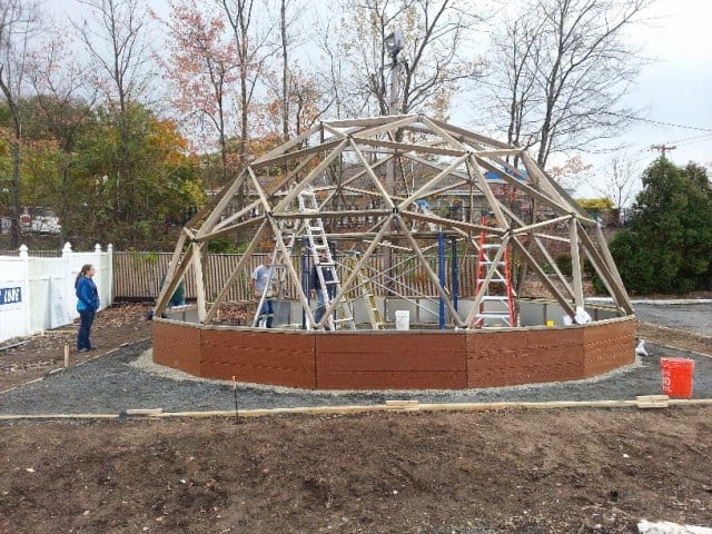 The construction of their geodome greenhouse was a school-wide effort with students contributing from all grades. It took them three weeks to build the structure.
