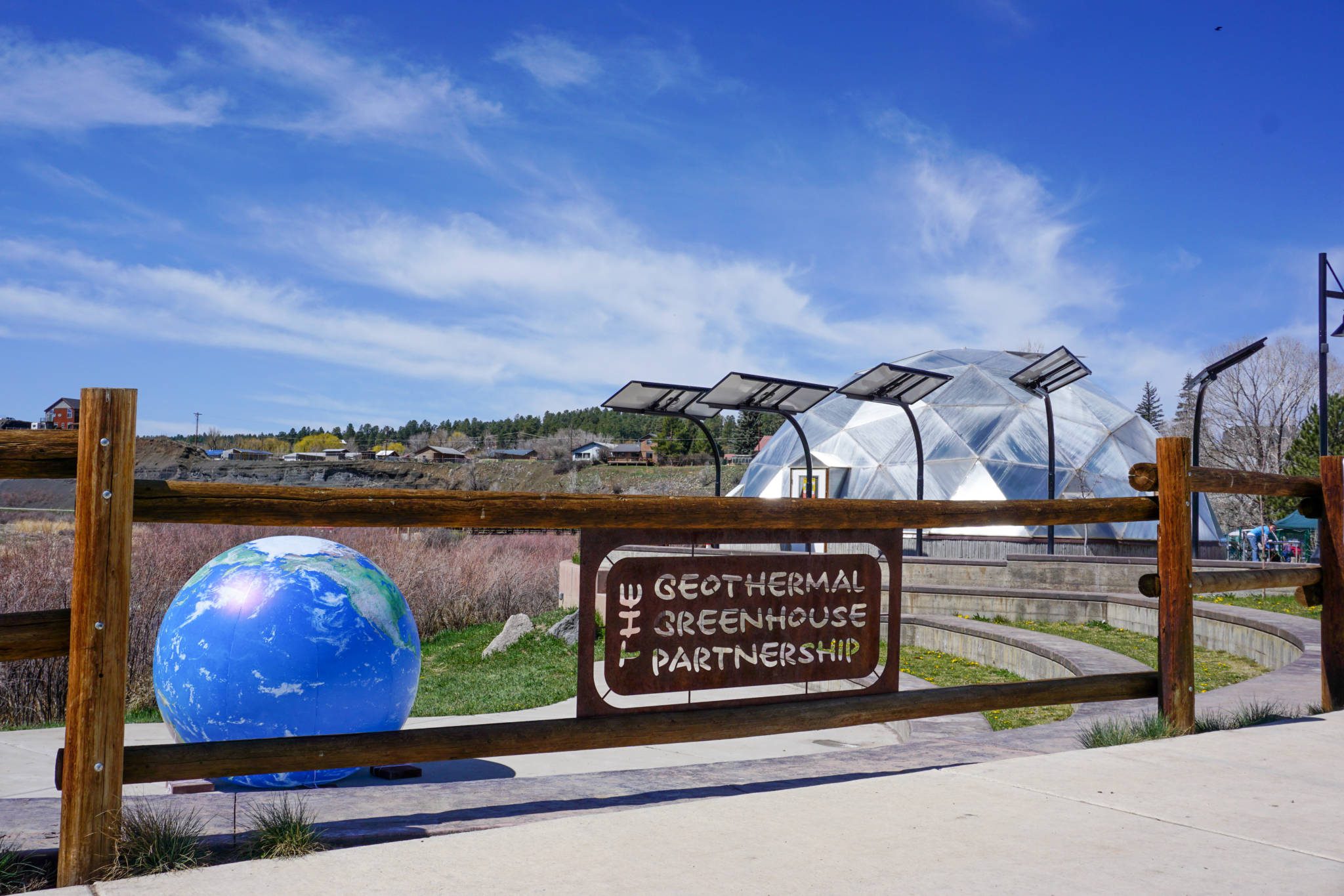 Today the community venture known as The Geothermal Greenhouse Partnership, Inc, (GGP) consists of three 42’ Growing Dome greenhouses heated with geothermal power, an Audubon native plants garden, a Rotary club garden, and an amphitheater along the San Juan Riverwalk. The greenhouses use geothermal energy from nearby natural hot springs. This renewable energy source helps to maintain a consistent temperature within the greenhouse, allowing for the growth of a variety of plants year-round in USDA hardiness zone 5a.