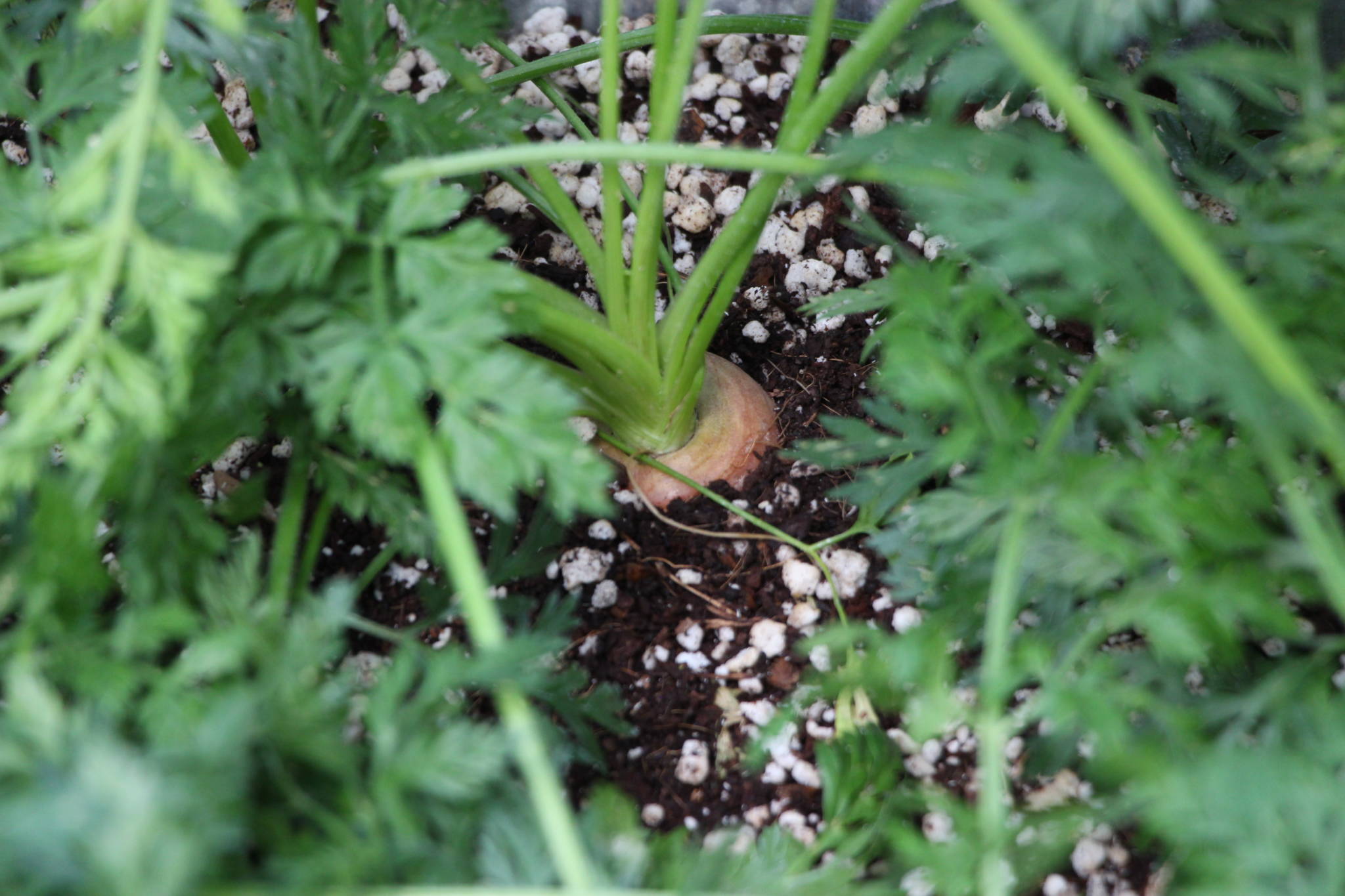 What are the best varieties of greenhouse carrots? This season we planted carrot seeds saved from previous harvests, including rainbow carrots (purple, red, orange), and they all popped up. Growing Spaces employee Tina would also like to recommend Red Core Chantenay carrots.