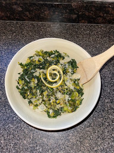 Next up, devein the kale and loosely chop. You will need a large deep skillet. Turn on the stovetop to medium-high heat, melt butter, and sauté the leeks and the garlic until light brown and aromatic, about 8-10 minutes. Steam the kale separately, the steaming will condense the kale. Add kale to the leek mixture, lemon juice, then the shredded parmesan cheese and fresh cracked pepper until coated or your preference. Serve as a side dish to your favorite protein or as a nutrient-packed lunch.