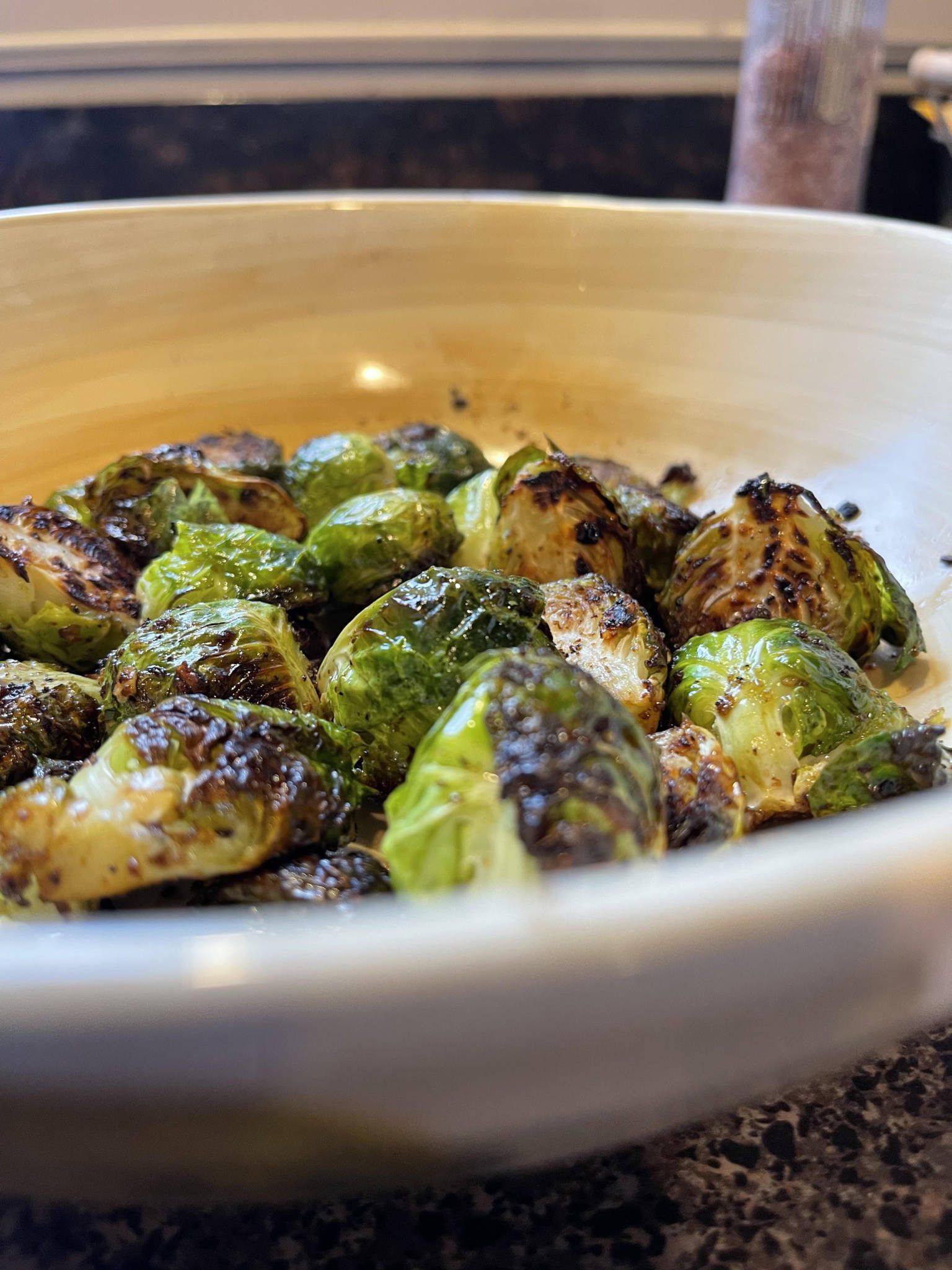 Remove the Brussels sprouts from your oven and place them in a large serving dish. Use a pastry brush and or spoon to stir and coat the Brussels sprouts with the balsamic vinegar and agave glaze. Add salt and pepper to taste and serve.