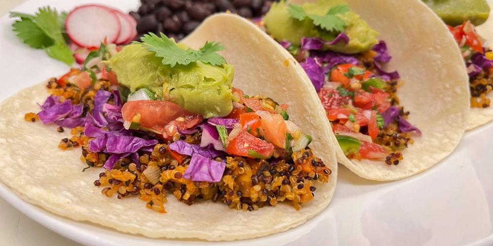 Baking the vegan taco meat helps to add texture. The quinoa gets a bit crispy on the outside and stays soft on the inside. While the veggies soften, but maintain their color. It makes for the perfect taco meat substitute.